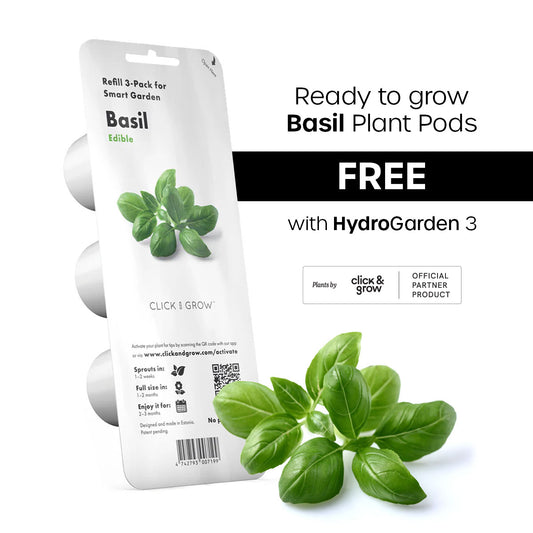 FREE ready to grow 3-pack Basil plant pods by Click & Grow (value $14.95) to get you started.