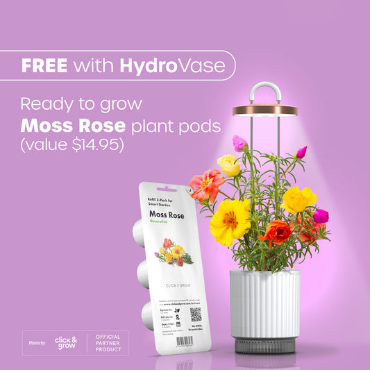 FREE ready to grow 3-pack Moss Rose plant pods by Click & Grow (value $14.95) to get you started.